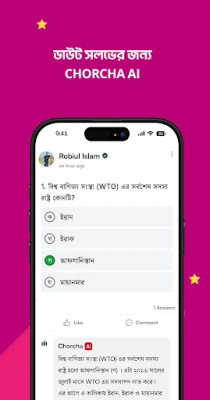Το Chorcha είναι μια εφαρμογή για επίλυση προβλημάτων και προετοιμασία για σχολικές και διαγωνιστικές εξετάσεις (SSC, HSC, BCS, Τράπεζες). Οι μαθητές εξασκούνται σε ερωτήσεις, κάνουν online τεστ, χρησιμοποιούν υποστήριξη ΤΝ και παρακολουθούν την πρόοδό τους, όλα σε ένα σημείο.