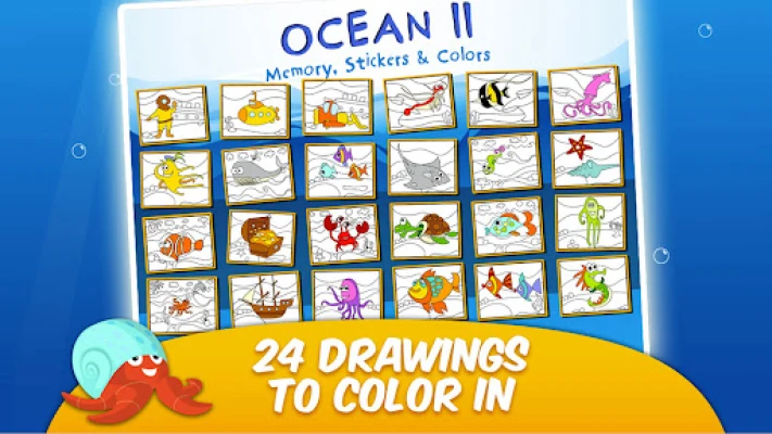 Ετοιμαστείτε για ένα μαγευτικό ταξίδι στον βυθό της μάθησης και της διασκέδασης με το **Oceano II Matching, Stickers and Colors**! Σχεδιασμένο με ιδιαίτερη προσοχή στις λεπτομέρειες και τις ανάγκες των μικρότερων παικτών ηλικίας 3 ετών και άνω, αυτή η εφαρμογή της MagisterApp προσφέρει μια μοναδική εκπαιδευτική και ταυτόχρονα χαλαρωτική εμπειρία. Είναι η ιδανική συντροφιά για να ενθαρρύνει τη δημιουργικότητα, να ενισχύσει τη μνήμη και να προσφέρει ατελείωτες ώρες ευχάριστης απασχόλησης, όλα μέσα σε ένα ασφαλές και όμορφα σχεδιασμένο περιβάλλον.